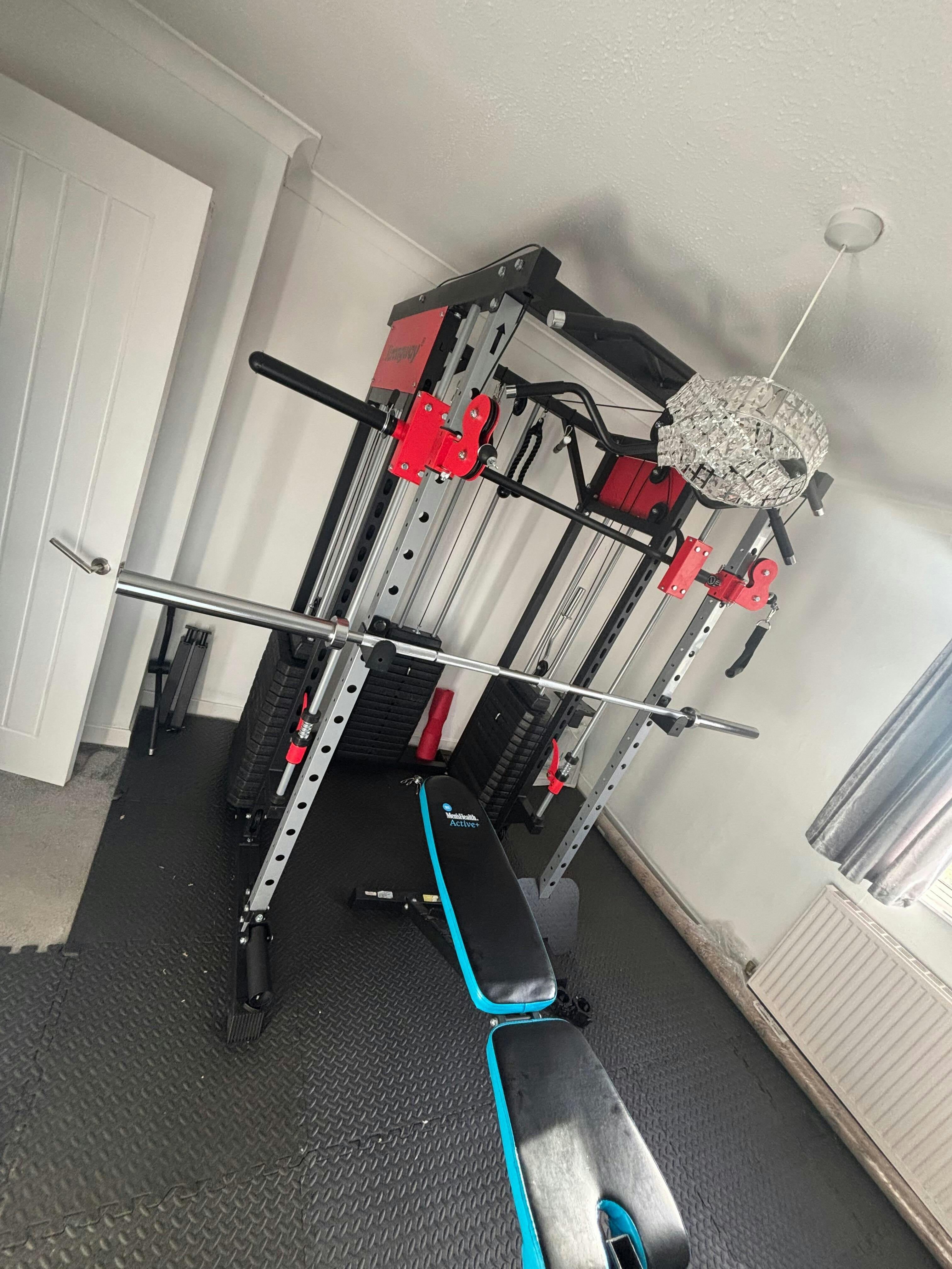 {"id":15387574468989,"title":"Strongway PREMIUM Multi Gym Smith Machine with Weights (3 Weight Stacks) - Multifunction Home Gym Machine","handle":"strongway-multi-gym-smith-machine-with-weights-3-weight-stacks-multifunction-home-gym-machine","description":"\u003cp style=\"font-weight: 400;\"\u003e\u003cstrong\u003eSTRONGWAY™ PREMIUM Multi Gym Smith Machine with Weights (3 Weight Stacks) - Multifunction Home Gym Machine\u003c\/strong\u003e\u003c\/p\u003e\n\u003cp style=\"font-weight: 400;\"\u003e\u003cstrong\u003eHeight – 209cm\u003cbr\u003eWidth – 196cm (including the smith machine barbell).\u003c\/strong\u003e\u003cstrong\u003e Width of frame is 118cm\u003cbr\u003eDepth – 156cm\u003cbr\u003eWeight Capacity - 450KG\u003cbr\u003eWeight Stack - 265.5KG (88.5KG + 88.5KG + 88.5KG on EACH SIDE) - INCLUDED\u003cbr\u003e\u003cbr\u003e\u003c\/strong\u003e\u003cstrong\u003e\u003c\/strong\u003e\u003c\/p\u003e\n\u003cp\u003e\u003ciframe width=\"560\" height=\"315\" src=\"https:\/\/www.youtube.com\/embed\/8BKOViznIv8?si=PKy9wXFwtunyxX4M\" title=\"YouTube video player\"\u003e\u003c\/iframe\u003e\u003c\/p\u003e\n\u003cp\u003e➤ [VERSATILITY] - Our Multi-Functional Rack also includes a \u003cstrong\u003eDual Cable Pulley System\u003c\/strong\u003e with\u003cstrong\u003e 3 x 88.5KG Weight Stacks on EACH SIDE (TOTAL of 265.5KG)\u003c\/strong\u003e, \u003cstrong\u003ePull-Up Bar\u003c\/strong\u003e, \u003cstrong\u003eSmith Machine Barbell, Lat Pulldown, Triceps Pushdown, Adjustable Dip Station, Row Footplate, Leg Brace for Seated Cable Rows, Single Cable Pulley System can be used\u003c\/strong\u003e (triceps and biceps exercises), \u003cstrong\u003eLandmine Attachment\u003c\/strong\u003e (for barbell lifts), \u003cstrong\u003eCable Handles, J-Hooks\u003c\/strong\u003e and more. \u003cbr\u003e\u003cstrong\u003e\u003cspan\u003e\u003cbr\u003e\u003c\/span\u003e\u003c\/strong\u003e➤ [HEAVY DUTY CONSTRUCTION] - Solid Construction: A sturdy steel frame keeps you safe while exercising. All-in-one machine will fit in your garage or side of your living room. A compact gym station which is ideal for home use. Maximise muscle activation – ergonomically designed with comfort in mind.\u003cbr\u003e\u003cbr\u003e➤ [MULTI-USE] - The compact multi gym for strength training at home: complete, comfortable, and versatile. Excellent home training station for full body workout. Perform a wide variety of efficient and challenging exercises to strengthen and tone your entire body. Legs, arms, chest, shoulders and more: develop your potential with targeted muscle training. \u003c\/p\u003e\n\u003cp style=\"font-weight: 400;\"\u003e➤ [TECHNICAL SPECIFICATIONS] - Includes\u003cstrong\u003e 3x 88.5KG weight stack EACH SIDE (TOTAL of 265.5KG)\u003c\/strong\u003e that can be customised based on skill level. Dimensions: \u003cstrong\u003eDepth=156cm, Width=196cm, Height=209cm\u003c\/strong\u003e. Weight capacity of 450KG. \u003cbr\u003e\u003cbr\u003e\u003cstrong\u003eCable Ratio - 2:1 for Lateral Weight Stacks. 1:1 for Rear Weight Stack\u003cbr\u003eSmith Machine Barbell Weight - 5.3KG\u003cbr\u003e\u003c\/strong\u003e\u003cstrong\u003eEach Weight Stack has 16 weight plates. Top weight plate is 3KG. Rest of the 15 weights plates are 5.7KG each\u003c\/strong\u003e\u003cbr\u003e\u003c\/p\u003e\n\u003cp style=\"font-weight: 400;\"\u003e\u003cstrong\u003eFollowing attachments are included:\u003c\/strong\u003e\u003c\/p\u003e\n\u003cul\u003e\n\u003cli dir=\"ltr\" aria-level=\"4\"\u003e\n\u003cp dir=\"ltr\" role=\"presentation\"\u003e\u003cspan\u003e2x Single Stirrup Cable attachment with Rubber Handle Grips\u003c\/span\u003e\u003c\/p\u003e\n\u003c\/li\u003e\n\u003cli dir=\"ltr\" aria-level=\"4\"\u003e\n\u003cp dir=\"ltr\" role=\"presentation\"\u003e\u003cspan\u003e1x Seated Row attachment with Rubber Handle Grip \u003c\/span\u003e\u003c\/p\u003e\n\u003c\/li\u003e\n\u003cli dir=\"ltr\" aria-level=\"4\"\u003e\n\u003cp dir=\"ltr\" role=\"presentation\"\u003e\u003cspan\u003e1x Triceps Rope Cable attachment\u003c\/span\u003e\u003cspan\u003e\u003c\/span\u003e\u003c\/p\u003e\n\u003c\/li\u003e\n\u003cli dir=\"ltr\" aria-level=\"4\"\u003e\n\u003cspan\u003e1x Lat Pulldown Cable attachment\u003cbr\u003e\u003c\/span\u003e\u003cspan\u003e\u003c\/span\u003e\u003cspan\u003e\u003c\/span\u003e\u003cspan\u003e\u003c\/span\u003e\u003cspan\u003e\u003c\/span\u003e\n\u003c\/li\u003e\n\u003cli dir=\"ltr\" aria-level=\"4\"\u003e\n\u003cp dir=\"ltr\" role=\"presentation\"\u003e\u003cspan\u003e1x Straight Bar Cable attachment\u003c\/span\u003e\u003c\/p\u003e\n\u003c\/li\u003e\n\u003cli dir=\"ltr\" aria-level=\"4\"\u003e\n\u003cp dir=\"ltr\" role=\"presentation\"\u003e\u003cspan\u003e1x Long Straight Bar Cable attachment\u003c\/span\u003e\u003c\/p\u003e\n\u003c\/li\u003e\n\u003cli dir=\"ltr\" aria-level=\"4\"\u003e\n\u003cp dir=\"ltr\" role=\"presentation\"\u003e\u003cspan\u003e1x Ankle Bracelet Cable attachment \u003c\/span\u003e\u003c\/p\u003e\n\u003c\/li\u003e\n\u003cli dir=\"ltr\" aria-level=\"4\"\u003e\n\u003cp dir=\"ltr\" role=\"presentation\"\u003e\u003cspan\u003e1x Row Footplate \u003c\/span\u003e\u003c\/p\u003e\n\u003c\/li\u003e\n\u003cli dir=\"ltr\" aria-level=\"4\"\u003e\n\u003cp dir=\"ltr\" role=\"presentation\"\u003e\u003cspan\u003e1x Barbell Row attachment\u003c\/span\u003e\u003c\/p\u003e\n\u003c\/li\u003e\n\u003cli dir=\"ltr\" aria-level=\"4\"\u003e\n\u003cp dir=\"ltr\" role=\"presentation\"\u003e\u003cspan\u003e\u003c\/span\u003e\u003cspan\u003e1x Landmine attachment\u003c\/span\u003e\u003c\/p\u003e\n\u003c\/li\u003e\n\u003cli dir=\"ltr\" aria-level=\"4\"\u003e\n\u003cp dir=\"ltr\" role=\"presentation\"\u003e\u003cspan\u003e\u003c\/span\u003e\u003cspan\u003eDip Station attachments \u003c\/span\u003e\u003c\/p\u003e\n\u003c\/li\u003e\n\u003cli dir=\"ltr\" aria-level=\"4\"\u003e\n\u003cp dir=\"ltr\" role=\"presentation\"\u003e\u003cspan\u003e\u003c\/span\u003e\u003cspan\u003e2x Safety Bars\u003c\/span\u003e\u003c\/p\u003e\n\u003c\/li\u003e